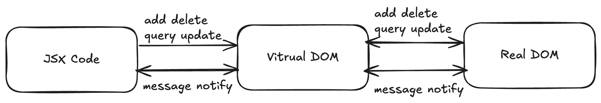 当我们需要创建或更新元素时,React 首先会让这个虚拟 dom 对象进行创建和更改,然后再将虚拟 dom 对象渲染成真实DOM;当我们需要对DOM进行事件监听时,首先对VitrualDom进行事件监听,VitrualDom会代理原生的DOM事件从而做出响应。