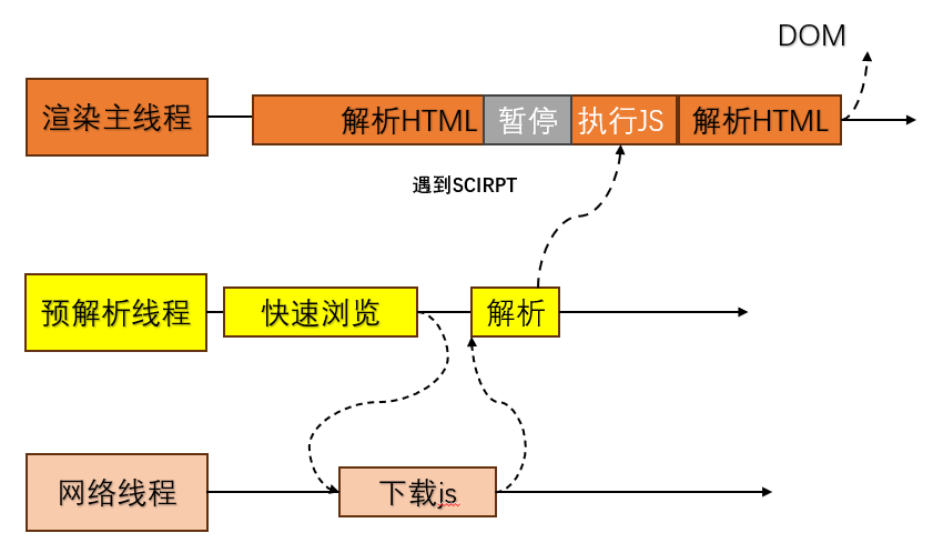 如果主线程遇到 JS 时必须暂停一切的任务,等待下载执行完后才能继续 解析线程可以分担一点下载 JS 的任务