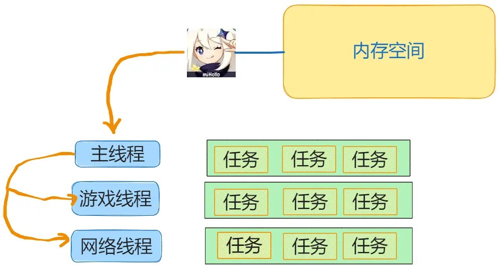 如果程序需要同时执行多块代码,主线程就会开启更多的线程来执行代码,所以一个进程总可以包含多个线程