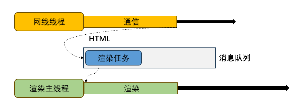 当浏览器的网络线程收到HTML文档后,会产生一个渲染任务,并将其传递给渲染主线程的消息队列