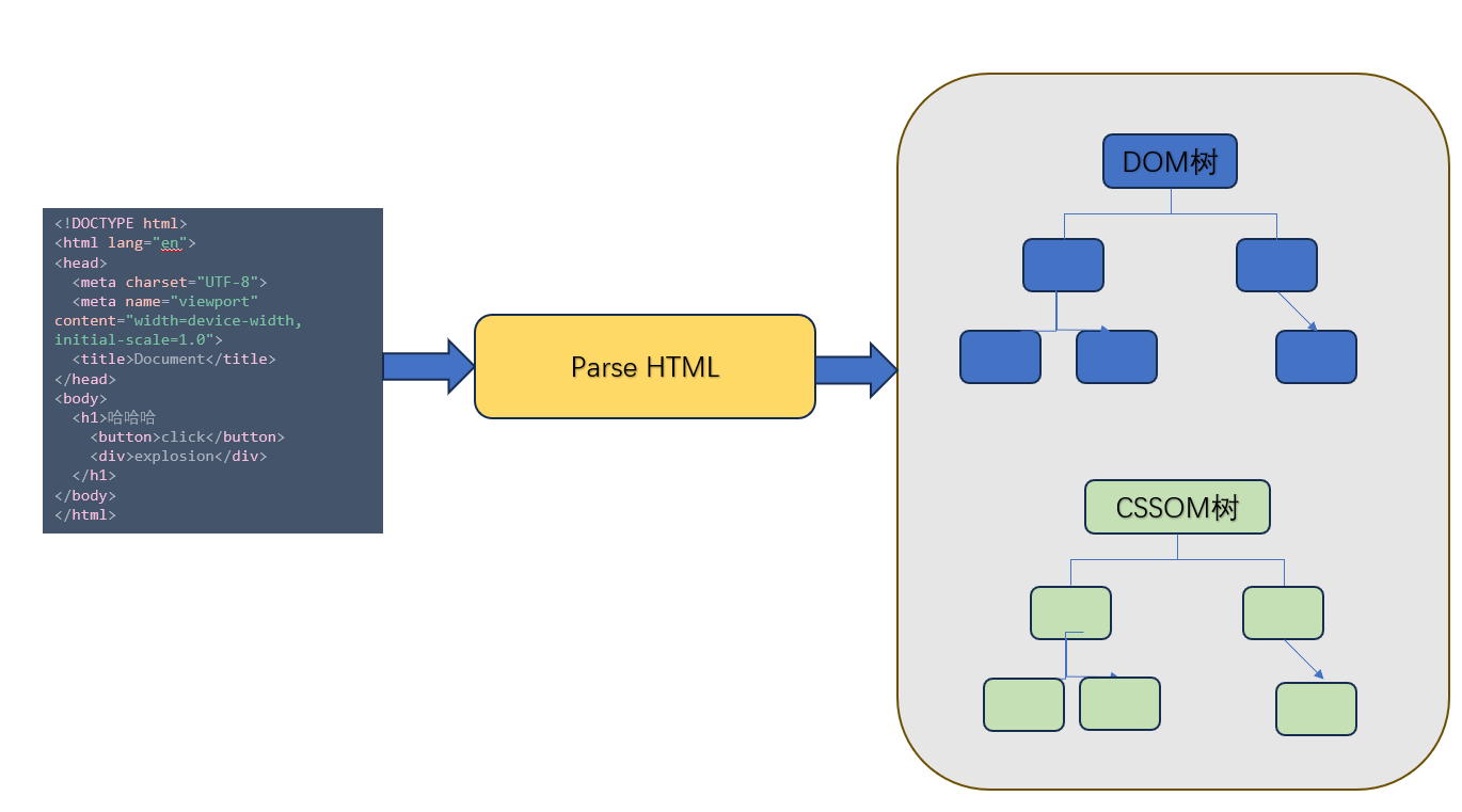 在第一步完成后 会得到 DOM 树和 CSSOM 树 浏览器的默认样式、内部样式、外部样式、行内样式会包含在 CSSOM 树中