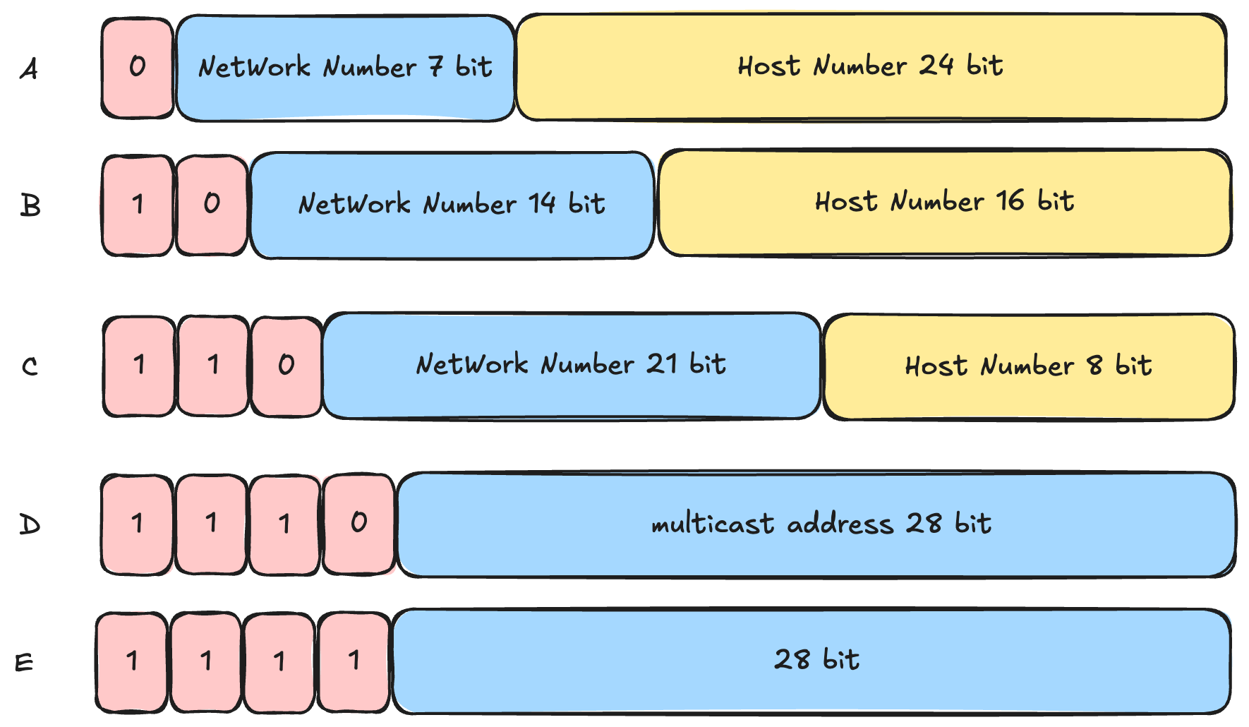 IP 地址最初被划分成 ABCDE 五种类型,通过前几位来判断是处于的地方